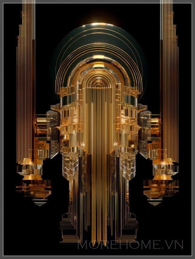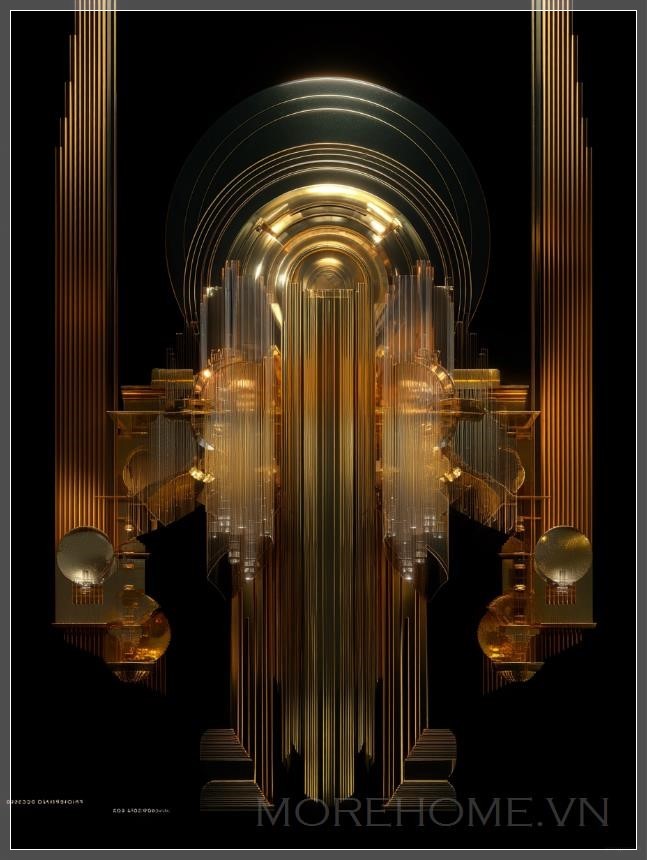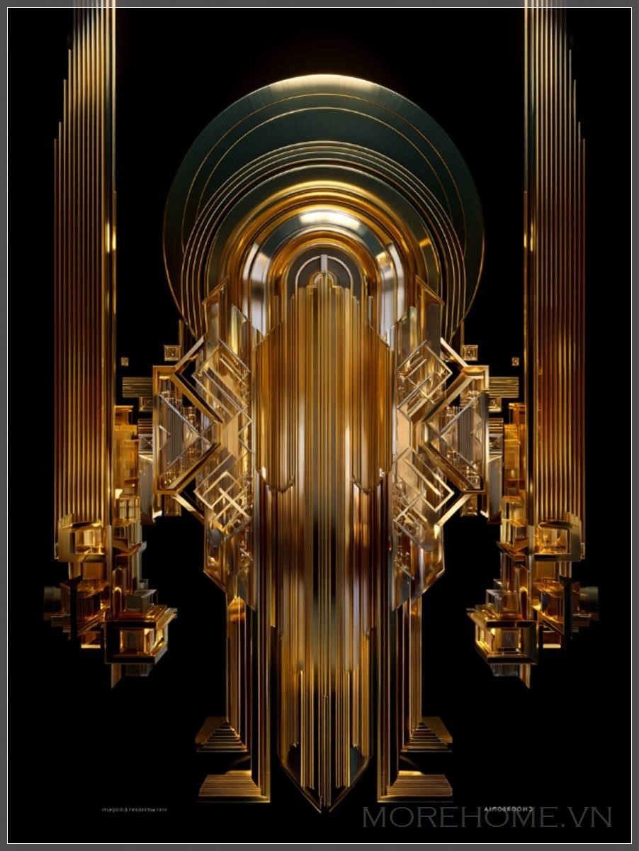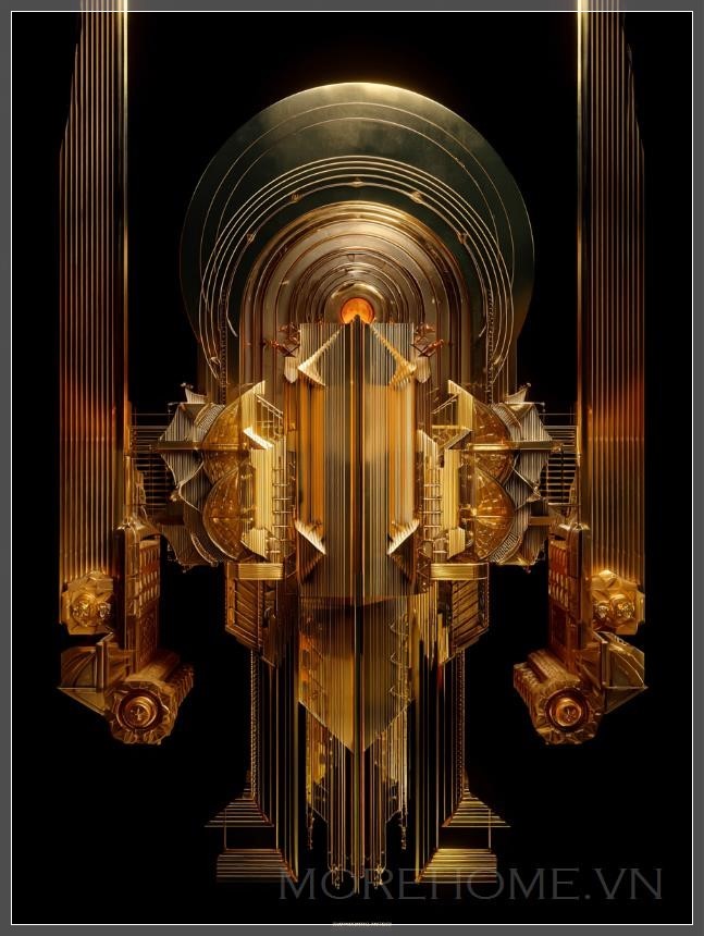 Màu vàng kim loại đặc trưng không chỉ tôn vinh vẻ đẹp của kim loại quý mà còn tượng trưng cho sự cao quý và bất diệt. Trên nền đen huyền bí, những đường nét vàng kim tạo nên một sự tương phản mạnh mẽ, khiến người xem không thể rời mắt. Đây là lời chơi màu sắc tinh tế, nơi mà bóng tối không phải để che giấu mà để làm nổi bật vẻ đẹp của ánh sáng.