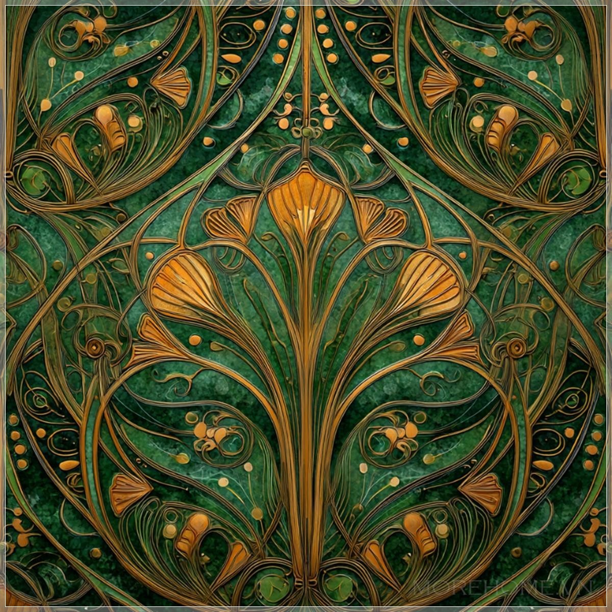 Trong thế giới nghệ thuật trang trí, ít có phong cách nào có thể sánh được với sự tinh tế và quyến rũ của Art Nouveau. Và khi những đường nét uốn lượn đặc trưng ấy được tô điểm bằng sắc xanh lá cây emerald kết hợp cùng ánh vàng kim lấp lánh, chúng ta có một tác phẩm nghệ thuật không chỉ đẹp mà còn toát lên vẻ sang trọng khó cưỡng.