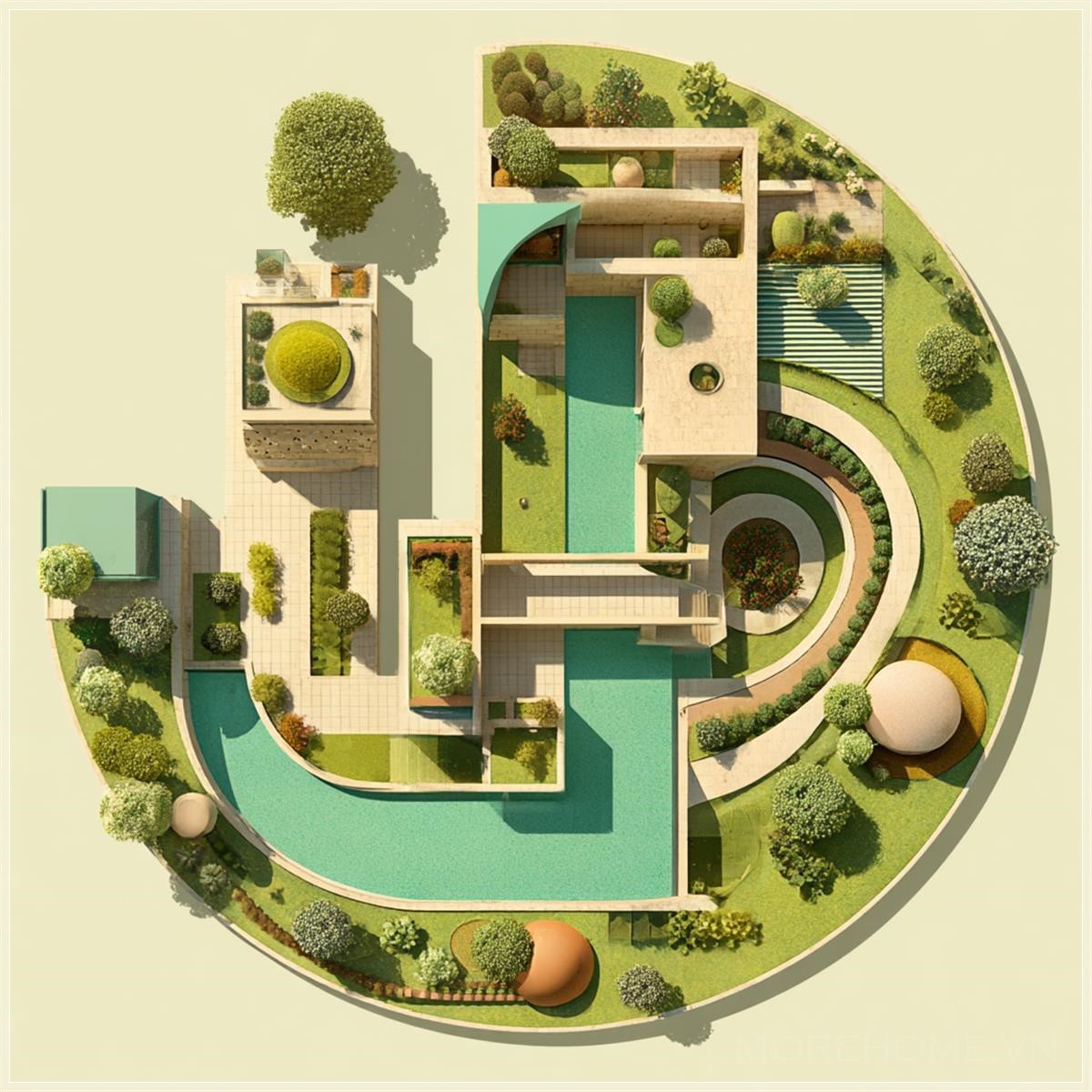 Hồ bơi ở trung tâm không chỉ mang ý nghĩa thẩm mỹ mà còn có vai trò điều hòa không khí cho toàn bộ ngôi nhà. Trong những ngày hè nóng nực, hơi nước bay lên từ mặt hồ tạo nên làn gió mát lành, lan toa khắp các phòng xung quanh. Âm thanh nhẹ nhàng của nước chảy từ những vòi phun nhỏ tạo nên bản giao hưởng êm dịu, xua tan mọi căng thẳng của cuộc sống hiện đại.