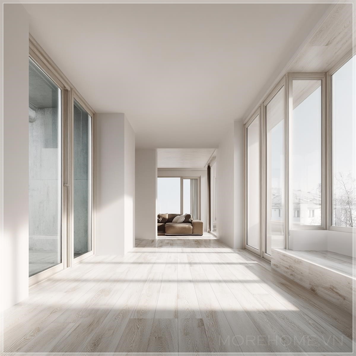 Có điều gì đó thật kỳ diệu khi bước vào một căn phòng hoàn toàn trống rỗng. Ánh sáng tự nhiên tràn ngập qua những ô cửa sổ lớn, tạo nên một bầu không khí ấm áp và chào đón. Đây không chỉ là một không gian vật lý, mà là một trang giấy trắng đang chờ đợi được viết nên câu chuyện.
