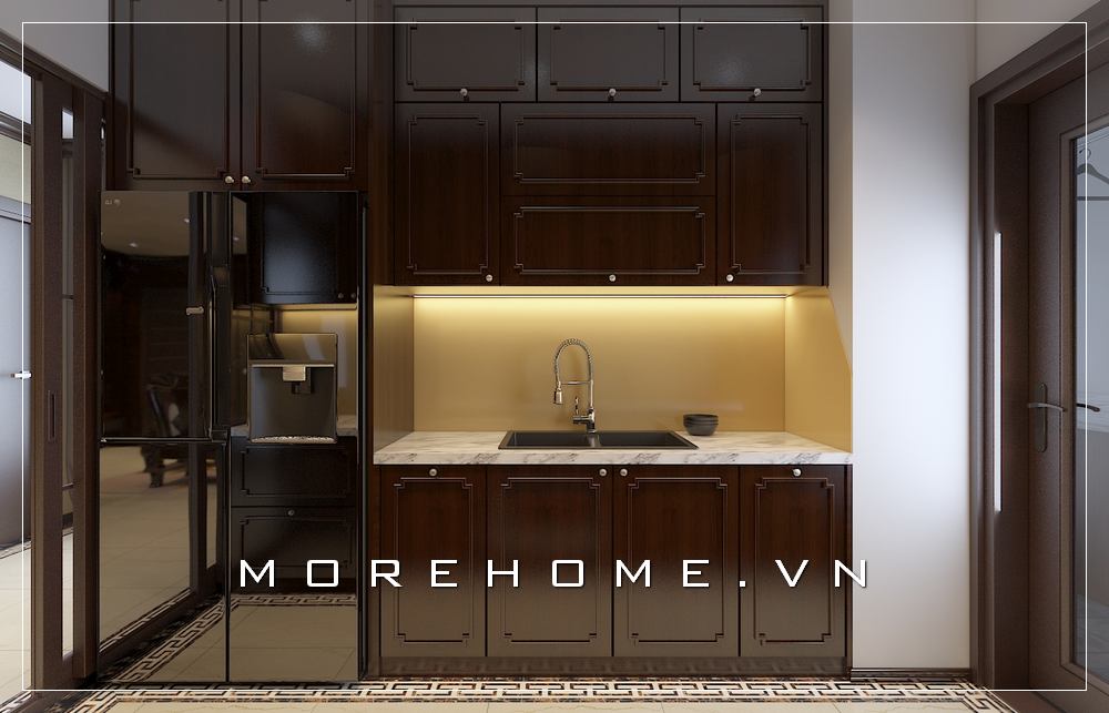 Không gian phòng bếp biệt thự với thiết kế đường nét tân cổ điển sang trọng, thu hút mọi ánh nhìn