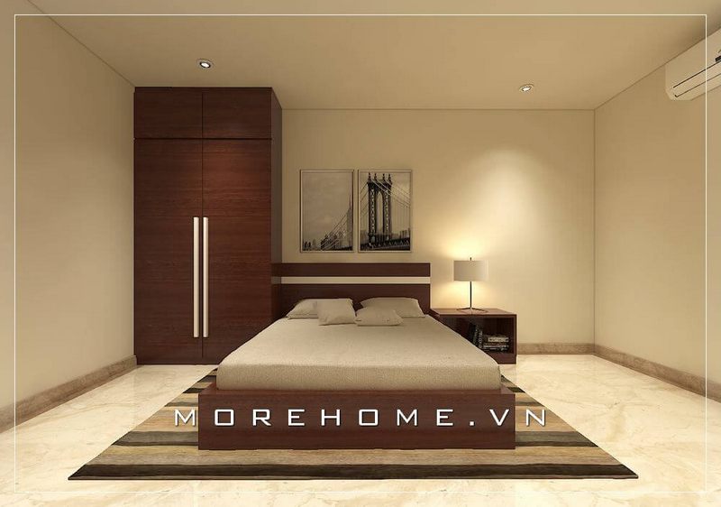 . Tủ quần áo gỗ công nghiệp cùng màu sắc với nội thất khác trong căn phòng tạo nên sự đồng bộ và tinh tế cho không gian.
